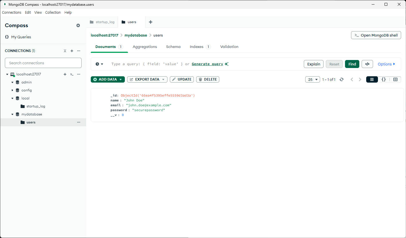 이렇게 하면 새로운 사용자가 MongoDB에 추가됩니다. 추가적인 질문이 있으면 언제든지 말씀해주세요! 😊